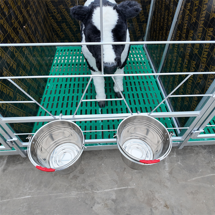 核心优势一:立单栏设计,从源头阻断交叉感染初生犊牛抵抗力弱,群居环境下易因互舔、接触粪便引发腹泻、呼吸道疾病等交叉感染问题。苏牧重工犊牛笼采用一牛一单栏科学布局,1.2米的标准间距搭配密度隔板,既能避免小牛互相啃咬、舔舐,切断疾病传播途径,又能为每头犊牛保留立活动空间,让它们吃饭、睡觉更安稳。每个单栏还标配食品不锈钢奶桶与自动饮水桶,喂食、饮水一体化设计,减少人工操作步骤,让犊牛喂养更省心、更规范。