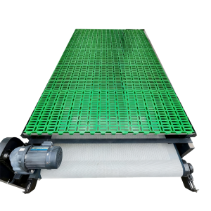 羊尿和羊粪通过传送带能实现即时分离,分离后的羊粪干燥度刚刚好,后续不管是发酵做有机肥,还是直接清运,都省心太多。更关键的是,整个羊场通过一条横向传送带,就能把所有羊舍的羊粪集中传送到指定位置,旁边停辆...